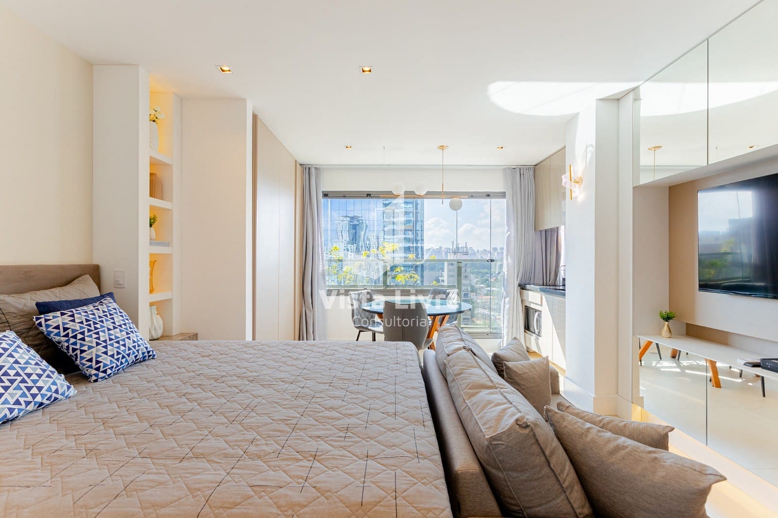 - Totalmente mobiliado com mobília e eletrodomésticos de alto padrão: Lava e seca e geladeira Electrolux, Smartv 4k 50 polegadas, cama queen size, cooktop, ar condicionado springer e sacada fechada com vidro"