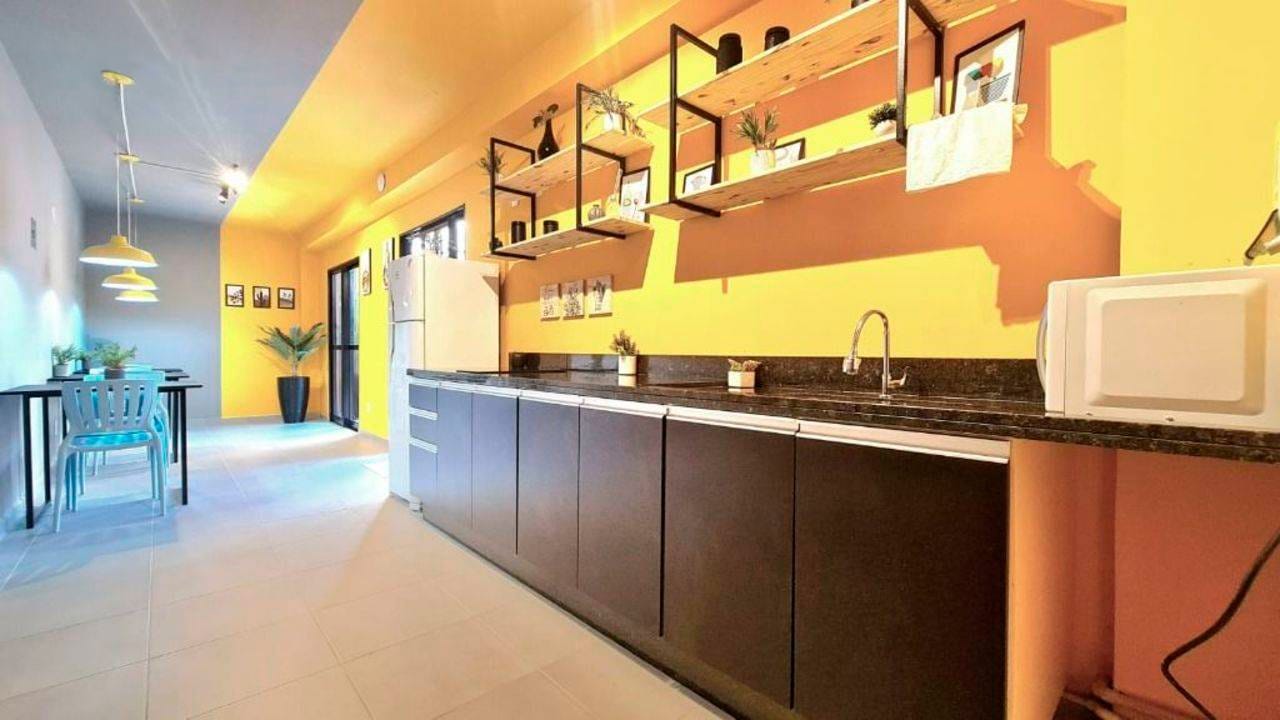 Cozinha coletiva para preparar refeições em grupo