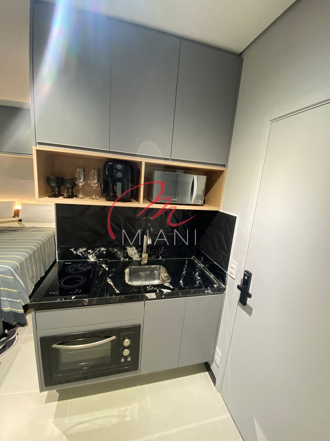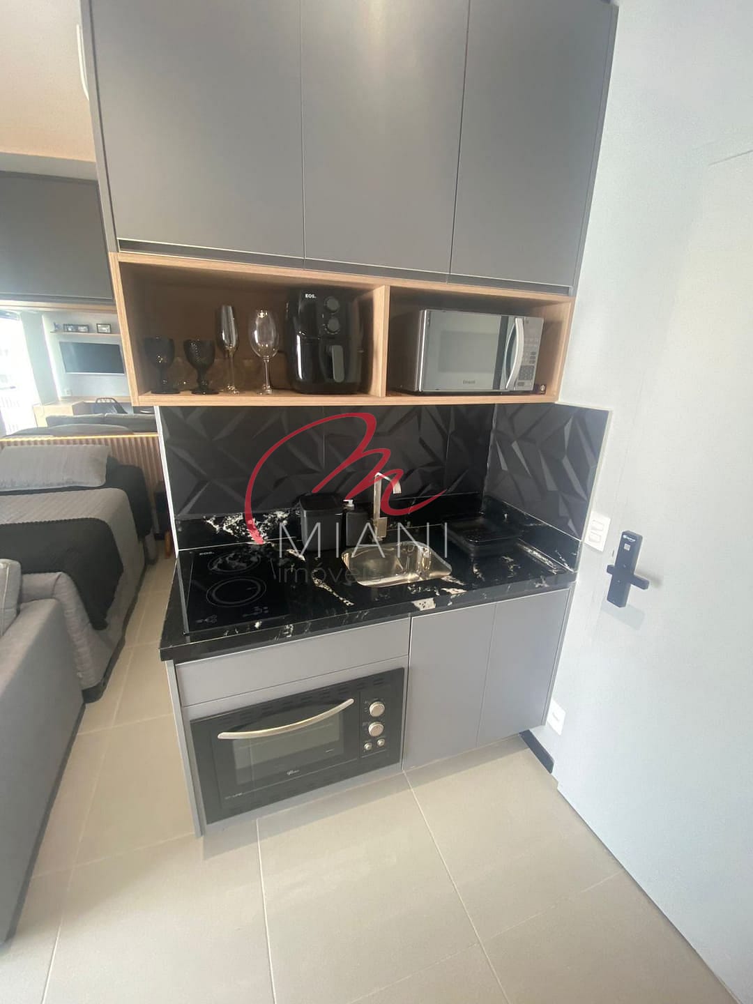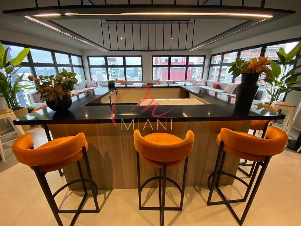 Todos os eletrodomésticos e móveis planejados já estão instalados, incluindo colchão Simmons, ar-condicionado inverter, geladeira, fogão de indução, microondas, máquina de café Nespresso e até mesmo uma adega para vinhos.