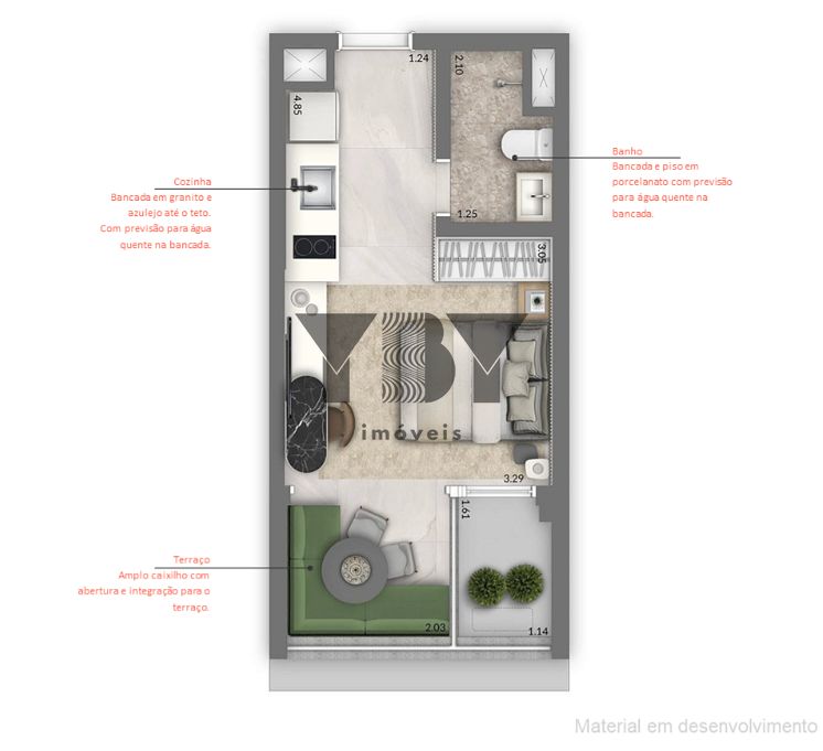 Studio à Venda com 1 quartos, 27 m² por R$ 423.465