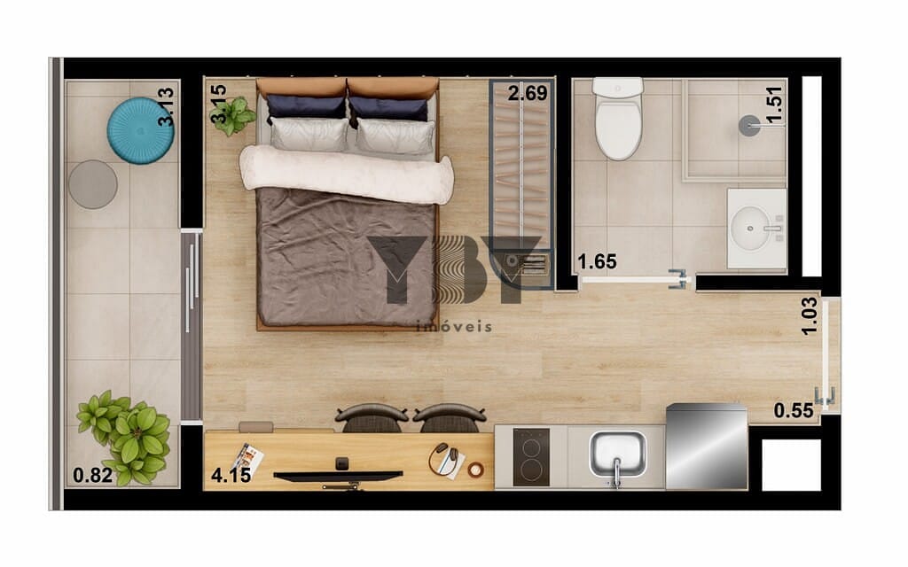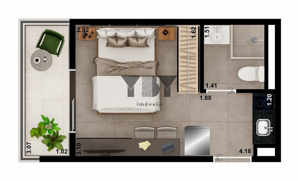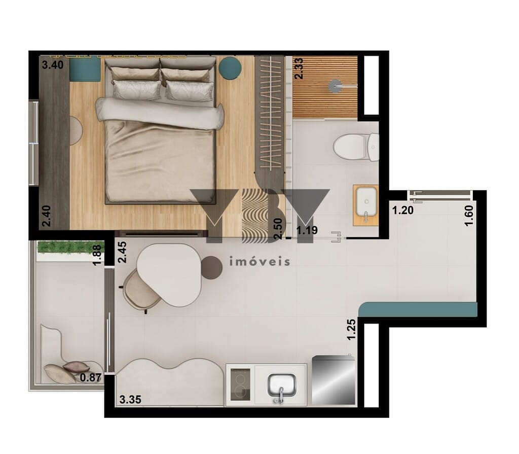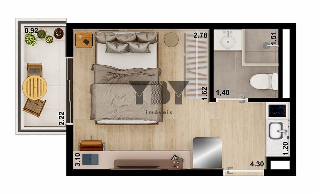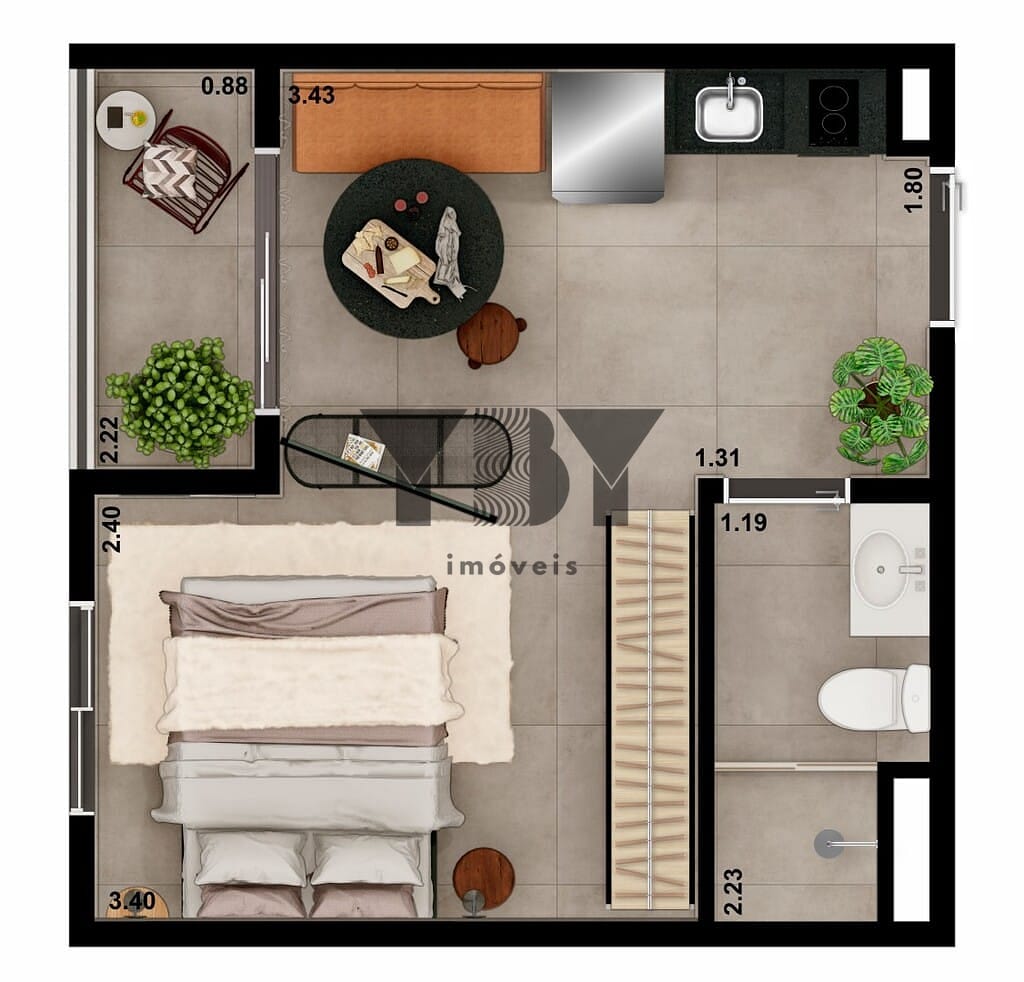Studio à Venda com 1 quartos, 25 m² por R$ 368.211