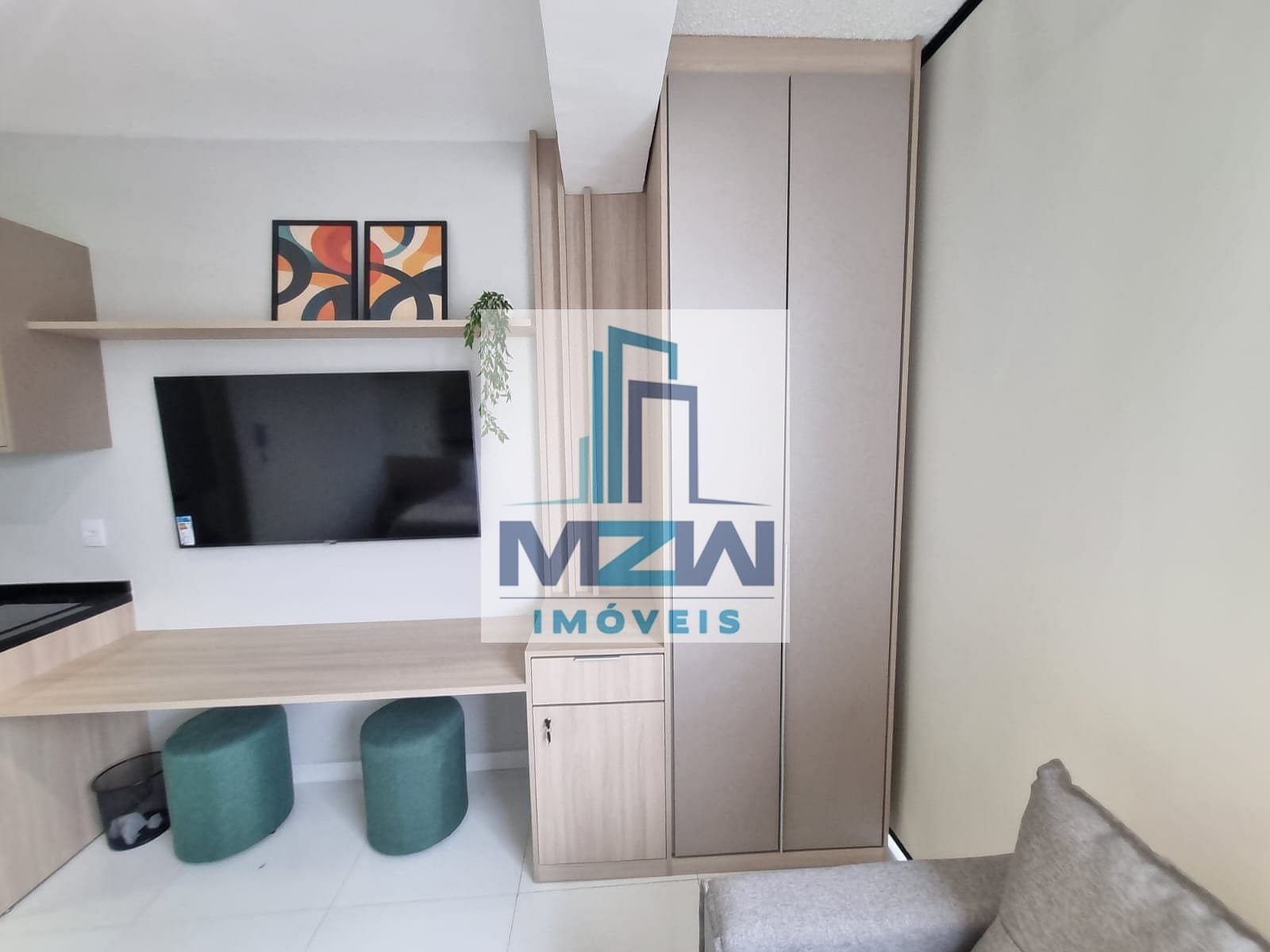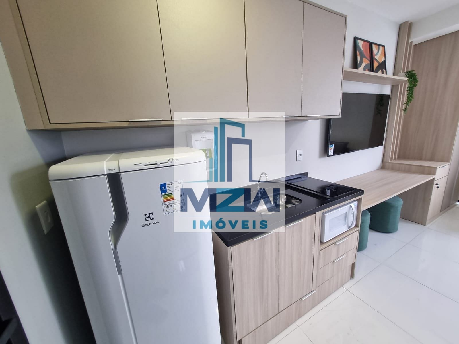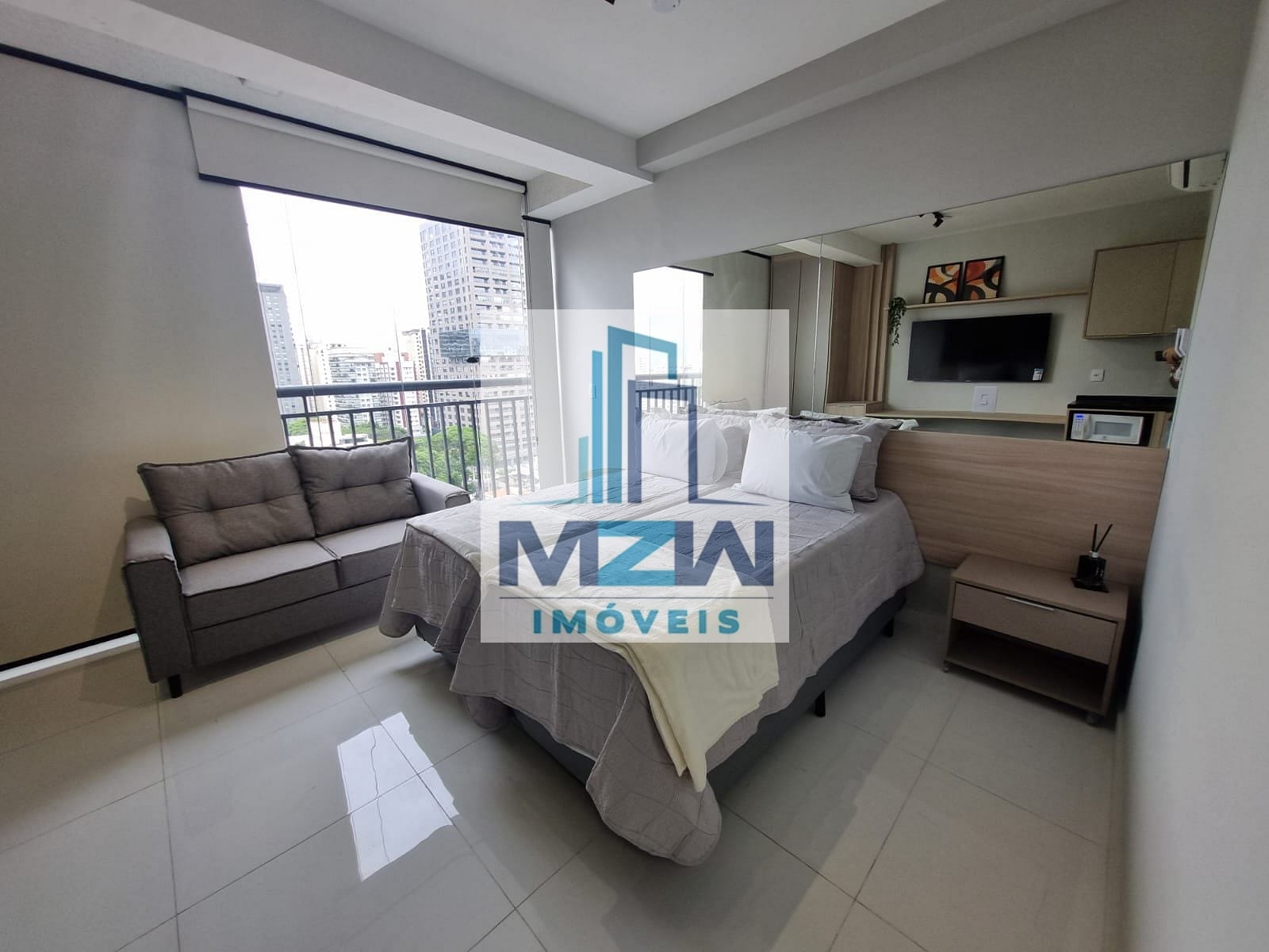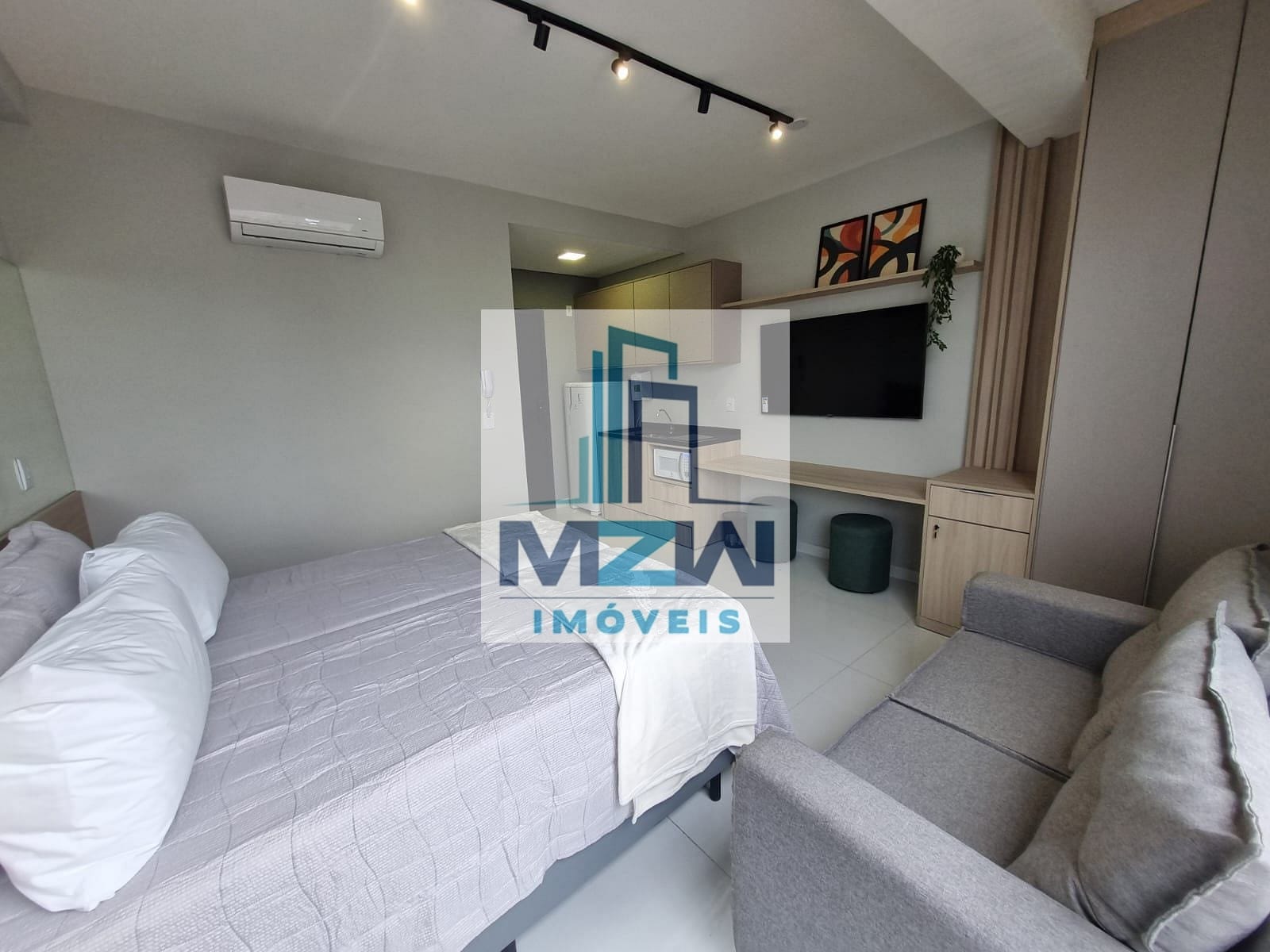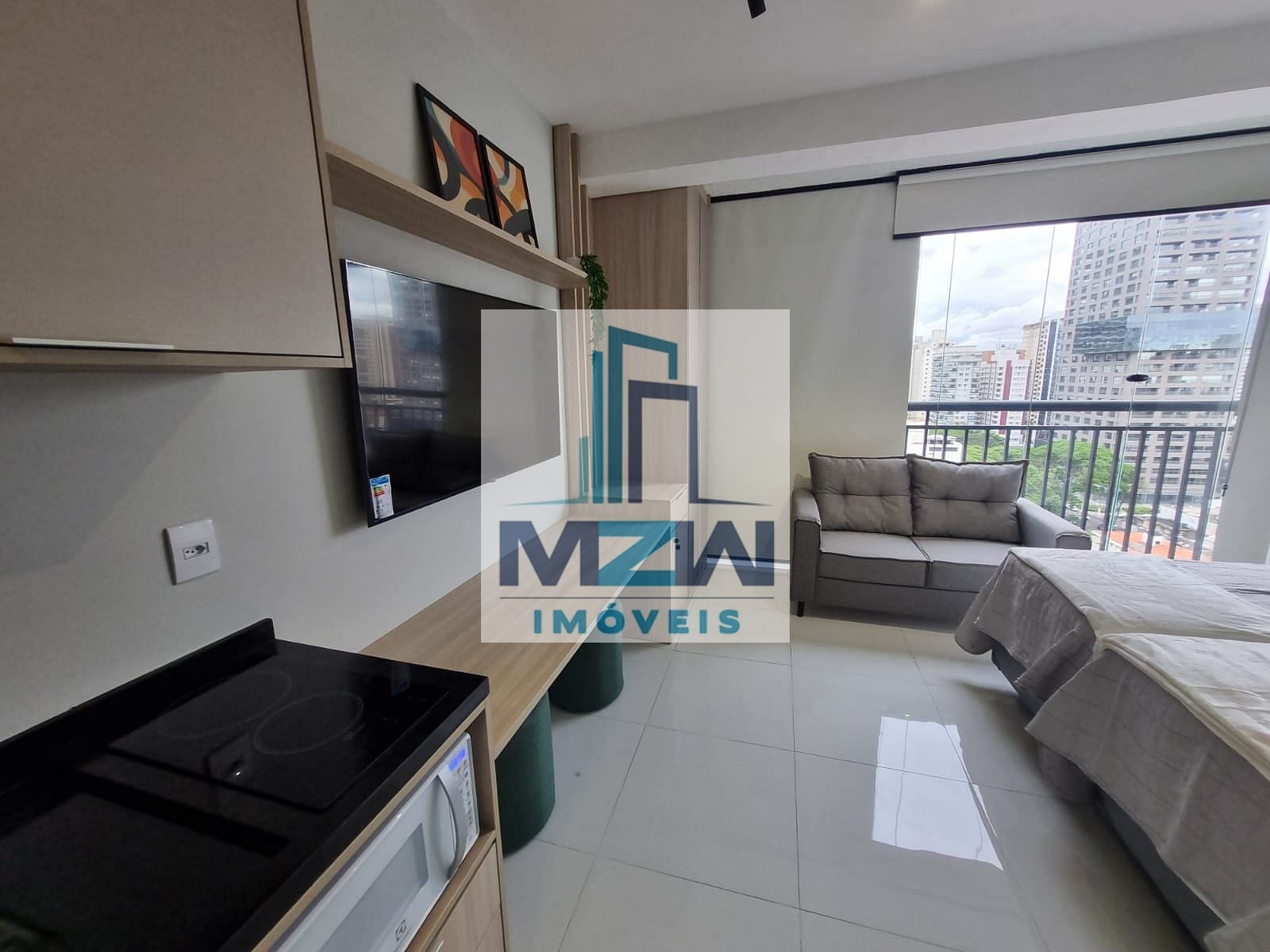 Equipado com cooktop, TV, microondas, chuveiro , secador de cabelos, cafeteira, talheres, pratos, copos, cama, sofá, filtro de água, geladeira, armários planejados, fechadura digital e ar condicionado.