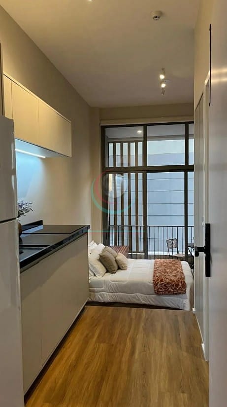Com uma área útil de 26 m², este studio é o espaço ideal para quem busca uma moradia confortável e prática. O ambiente foi projetado de forma funcional, com ótima distribuição dos espaços e acabamentos de qualidade. A cozinha compacta, com armários planejados, é perfeita para preparar refeições rápidas.