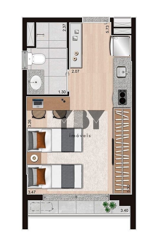 Studio à Venda com 1 quartos, 24 m² por R$ 369.600