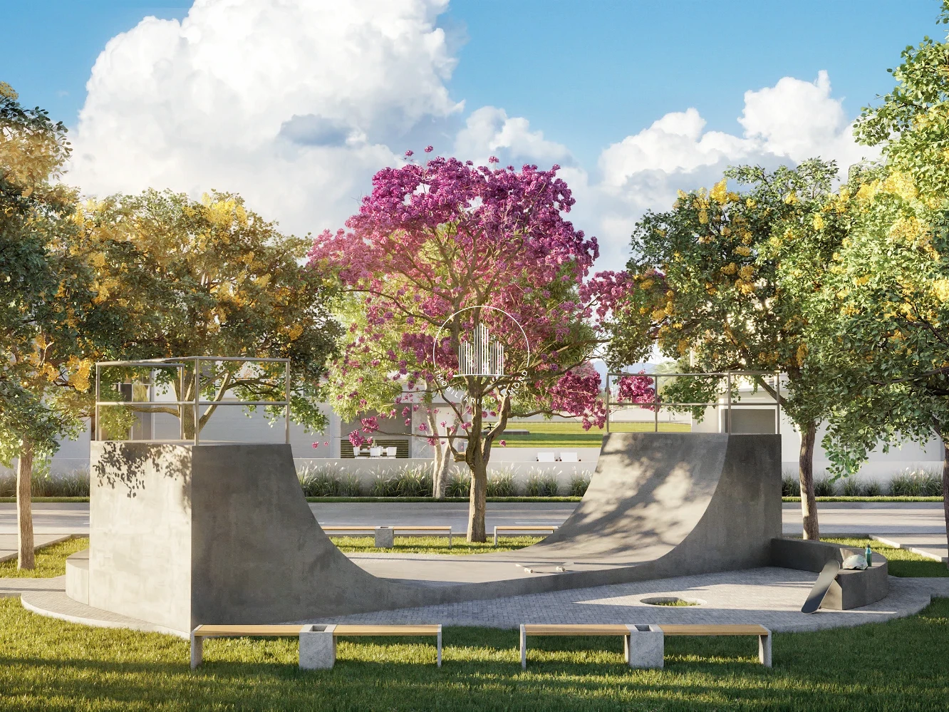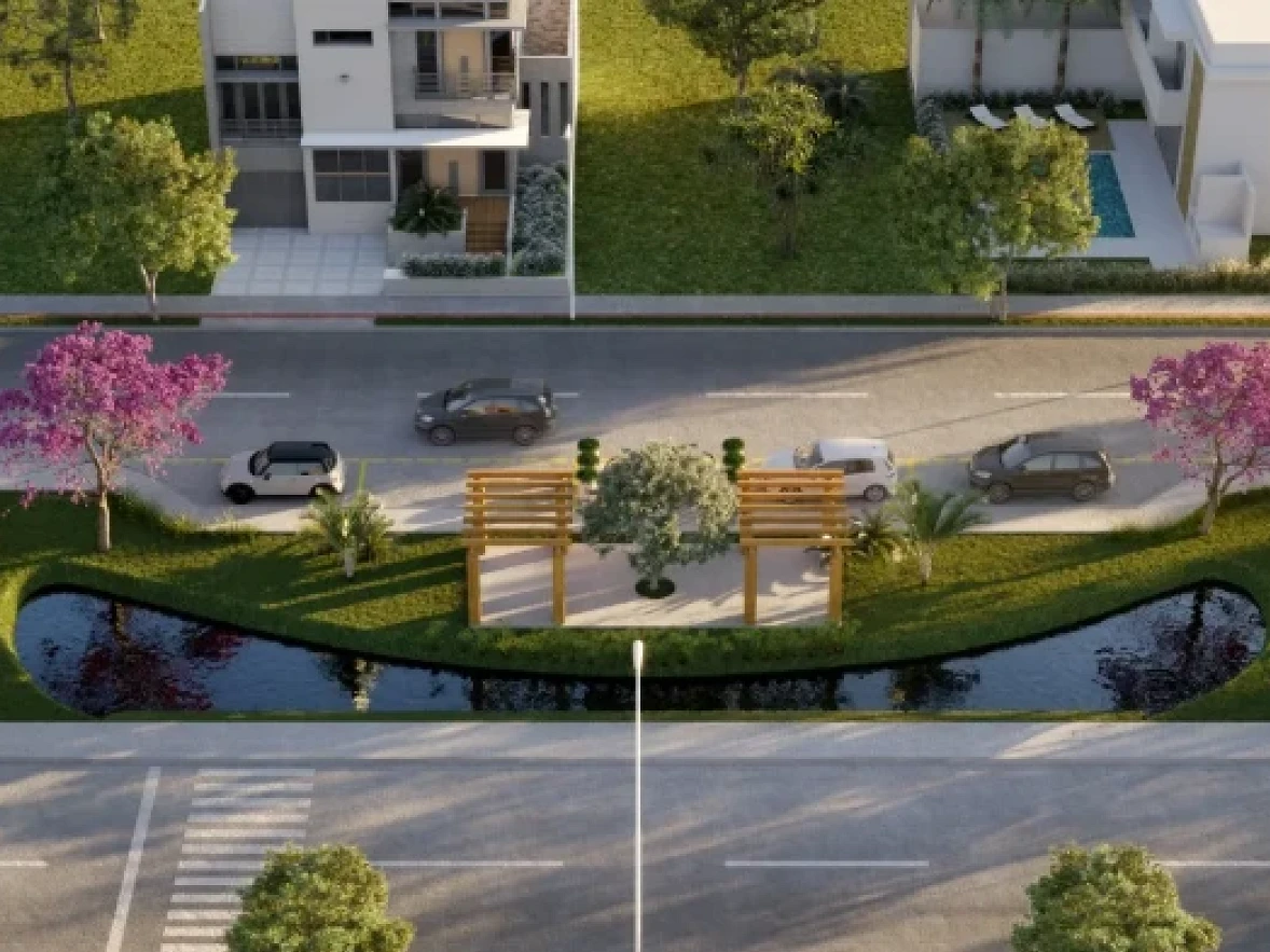 O loteamento oferece segurança completa, com acesso controlado e sistema CFTV com câmeras em pontos estratégicos. Na área de lazer, os moradores desfrutam de lagos contemplativos, praças com pergolados, playground, pista de skate, quadra de areia e espaço pet.