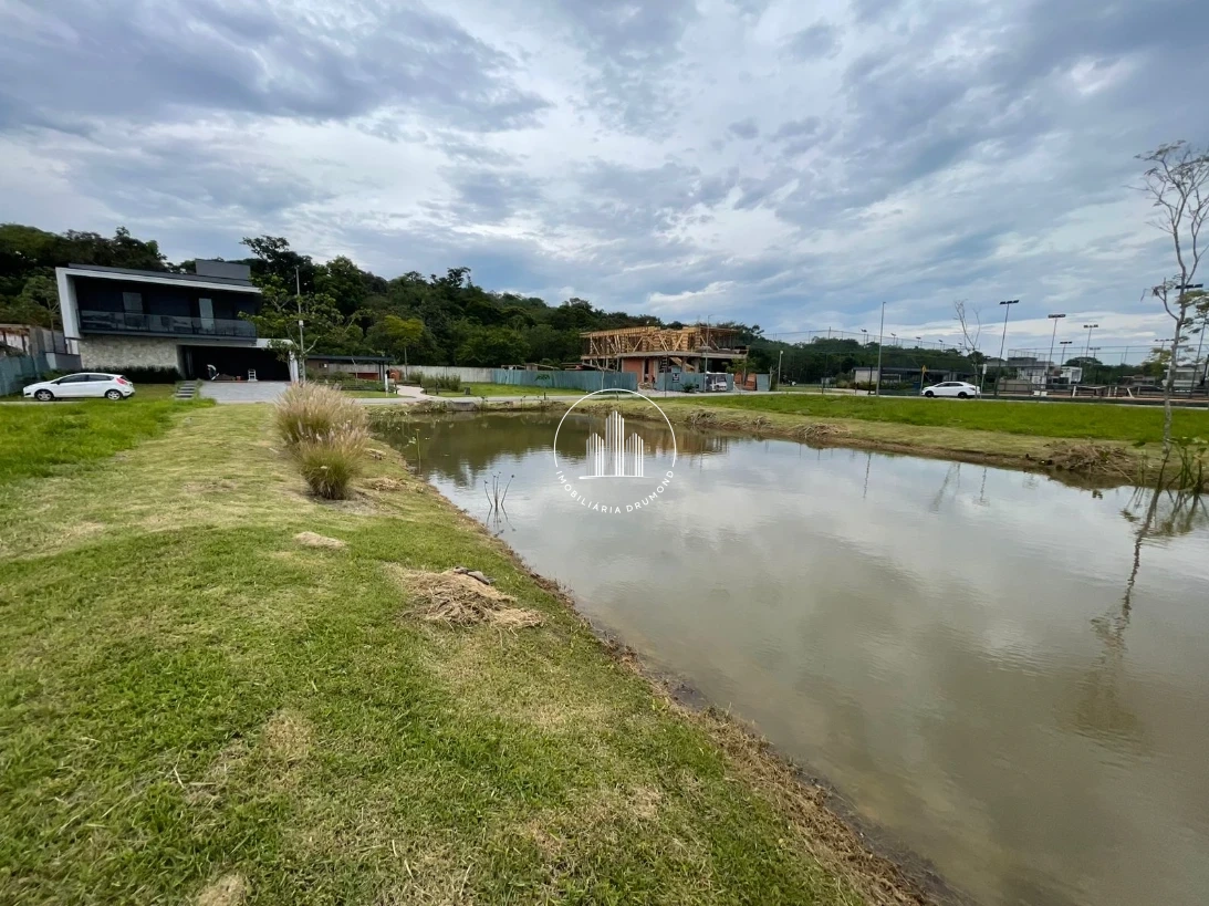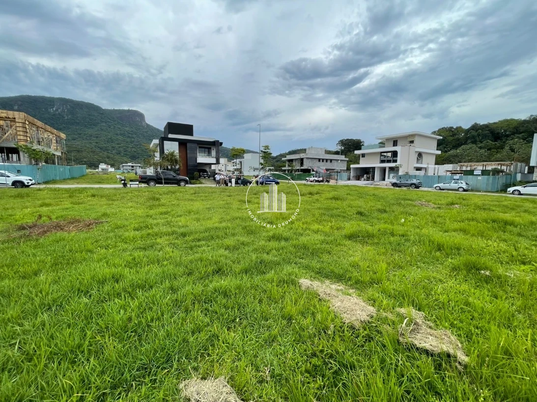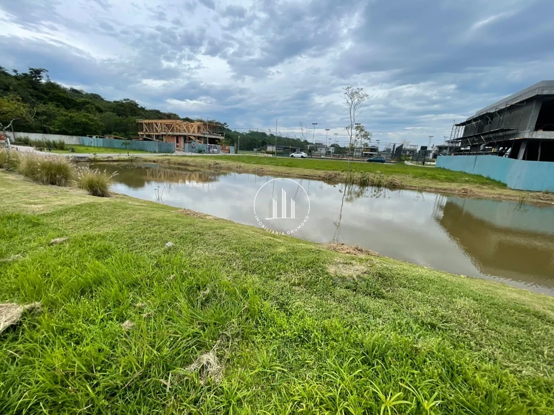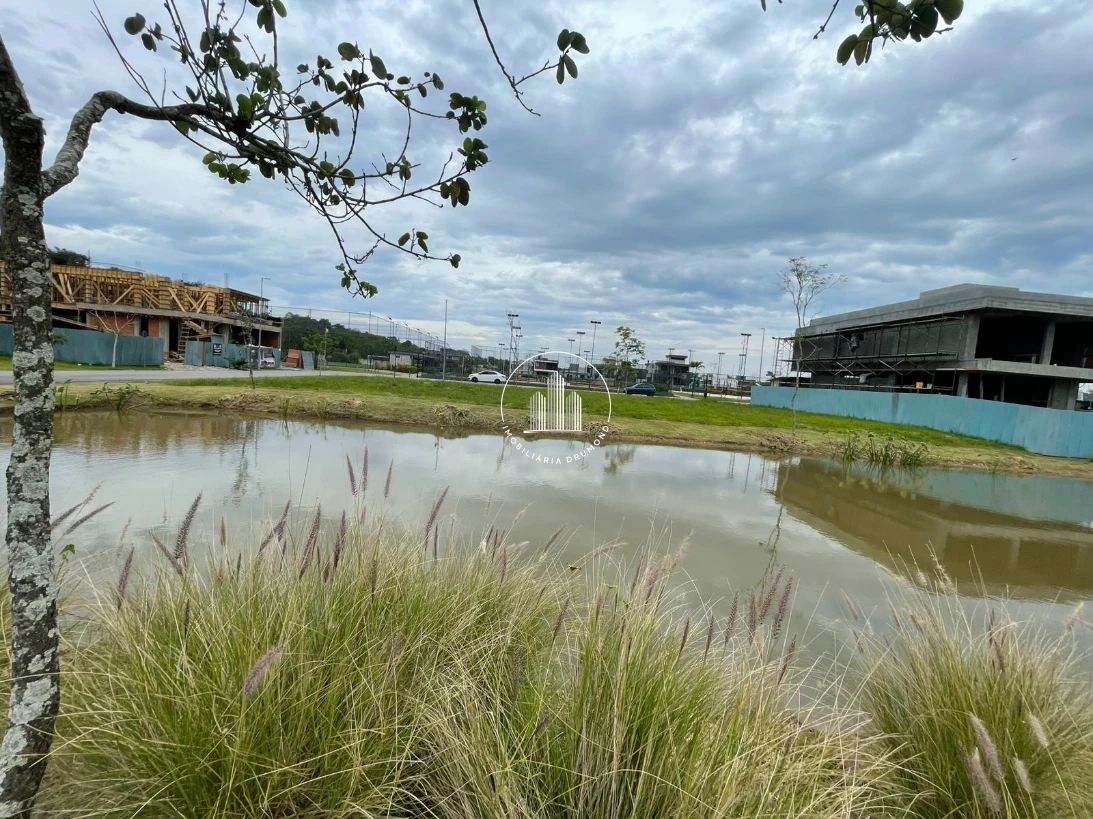 Terreno 400m² em Pedra Branca, Palhoça no Condomínio Reserva da Pedra com fundo para lago. A propriedade possui topografia plana facilitando a construção, está devidamente averbada com escritura pública e permite financiamento bancário. O terreno oferece vista privilegiada e localização estratégica dentro do condomínio fechado.