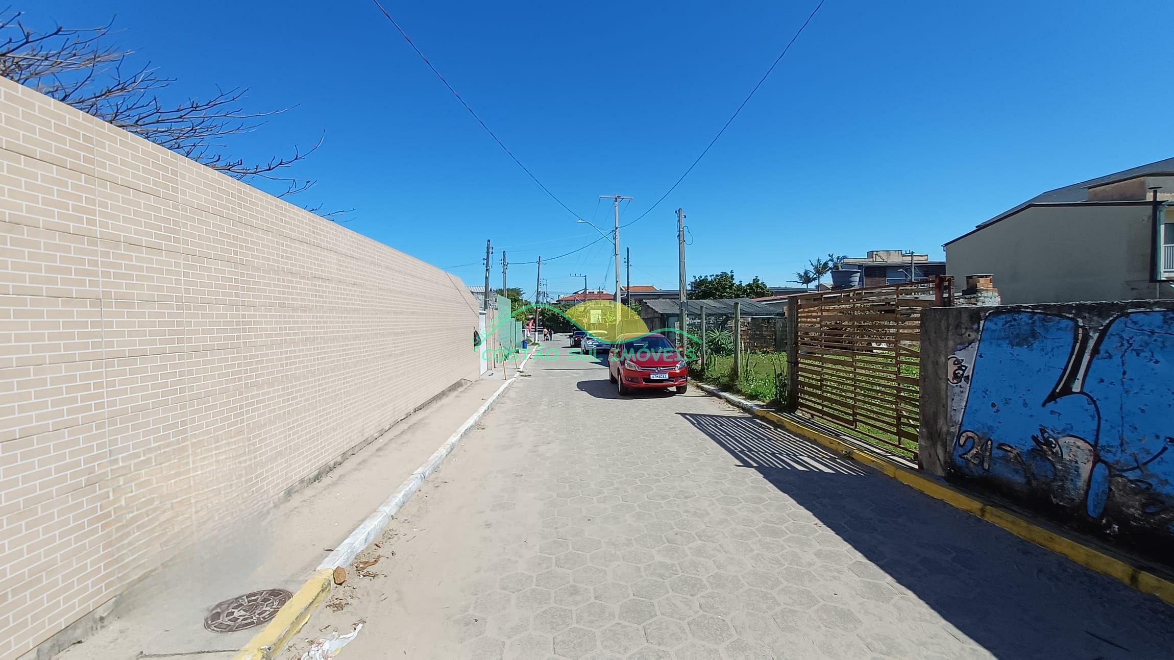 Rua tranquila, calçada e que termina no acesso a praia (170 metros de distância).