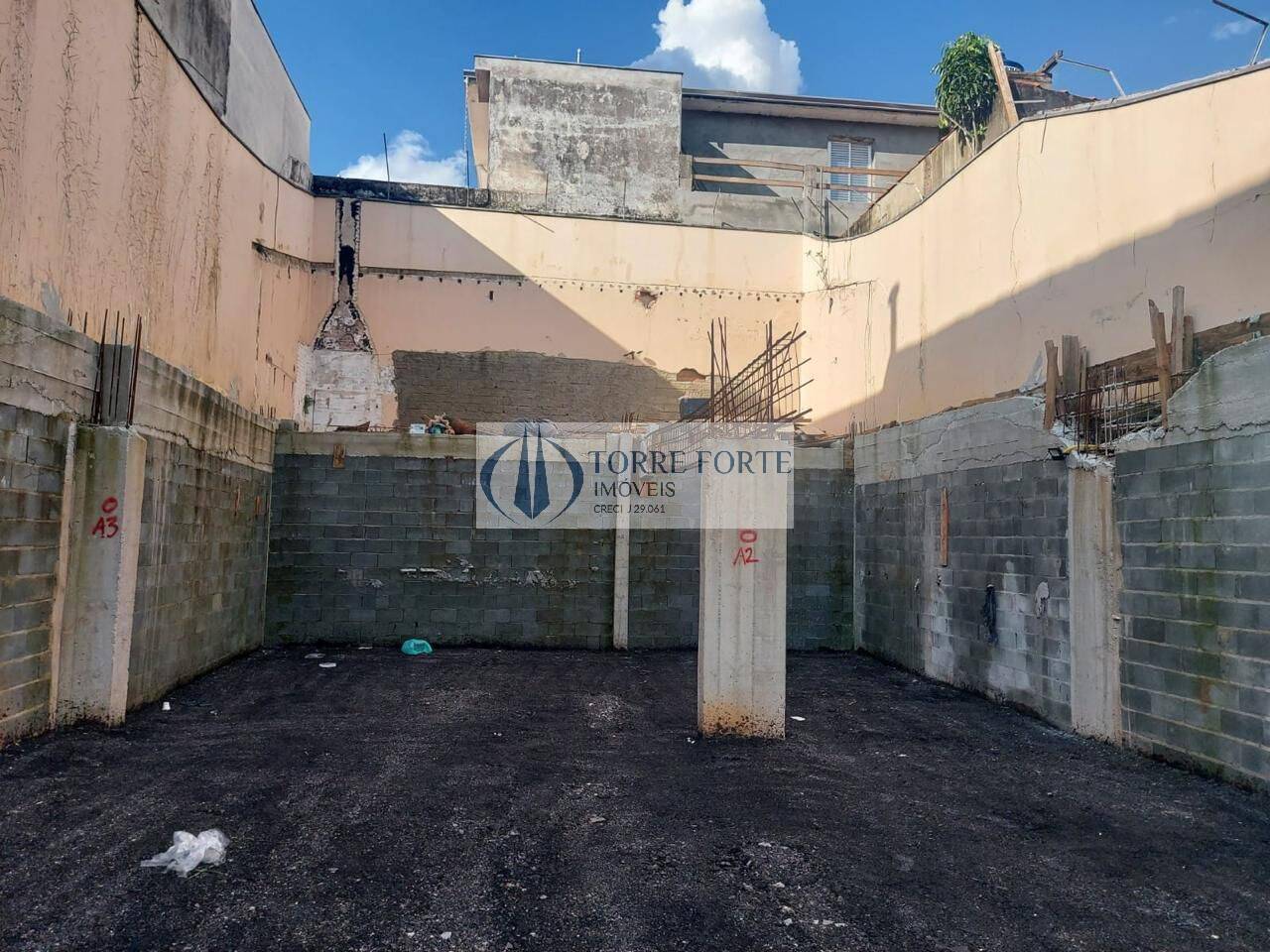 - Terreno plano, com fundação já executada para projeto residencial