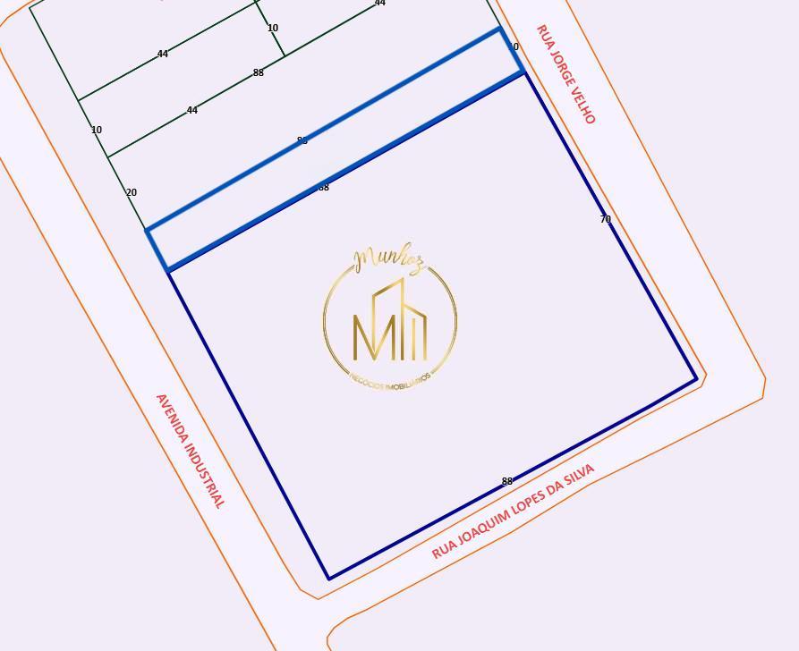 Área do Terreno com 7.040,00 m², Frente do terreno com 88,00 Metros, Fundos do terreno com 88,00 Metros, Lateral esquerda do terreno com 80,00 Metros, Lateral direita do terreno com 80,00 Metros.